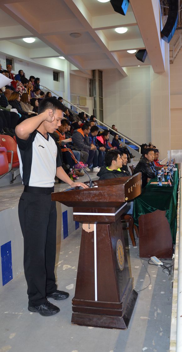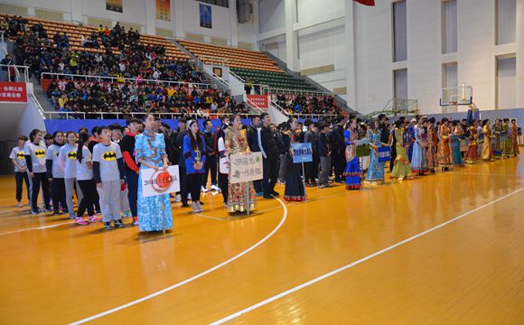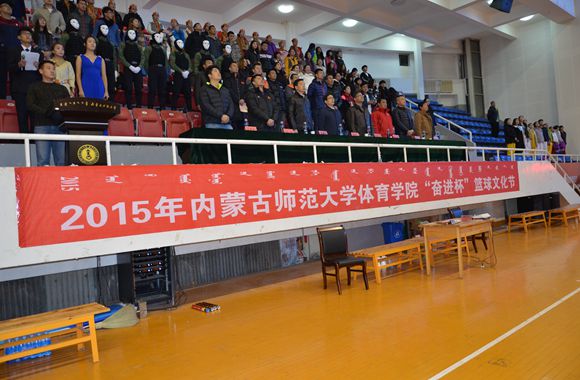 本网讯(文/图 体育学院学生会 姚辉 侯俊林)由共青团MK游戏网(中国)安卓通用版,委员会主办、体育学院学生会承办的2015年MK游戏网(中国)安卓通用版,“奋进杯”篮球文化节于2015年11月23日晚7点30在我院篮球馆隆重开幕。我校学生处处长单和盛、团委青年工作部负责人董欣、内蒙古金笛篮球裁判俱乐部会长白波、我院党政领导铁木尔、董建平、韩武出席开幕式,出席开幕式的还有我院学工办主任孟亚彪、本次比赛裁判长刘晨曦。我院800余名师生参加开幕式。开幕式由体育学院团总支书记敖永胜主持。