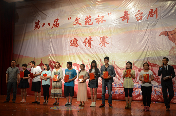 本网讯(文/图 体育学院学生会孟祥华、田贵金)我院《乡村爱情畅想曲》剧组及《项羽外传》剧组在团总支的指导下,经过了半个月的紧张排练,于5月29日晚19:30分在盛乐校区科技楼报告厅参加了内蒙古师范大学第八届“文苑杯”舞台剧邀请赛。两个剧组的演员们以饱满的热情、丰富的演技赢得了老师、同学们的认可和褒奖。最终,《乡村爱情畅想曲》剧组获得本届舞台剧邀请赛的季军,《项羽外传》剧组的表演获得了优秀奖。